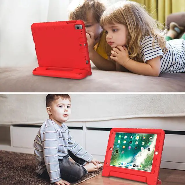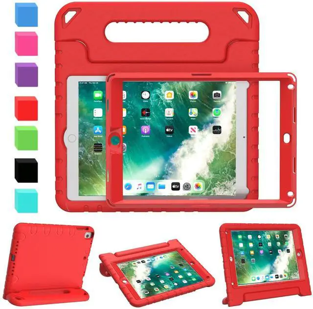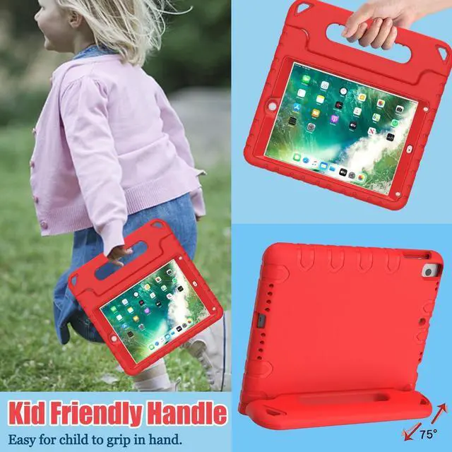 Give your iPad 9.7 inch a fully protection. ^^ Case is made from high-quality, EVA foam material with rugged surface for a firm grip. ^^ Fun driven convertible stand case can change into a handle for easy handling and carrying around from school to home. Also can be folded back to serve as the base to become a stand.