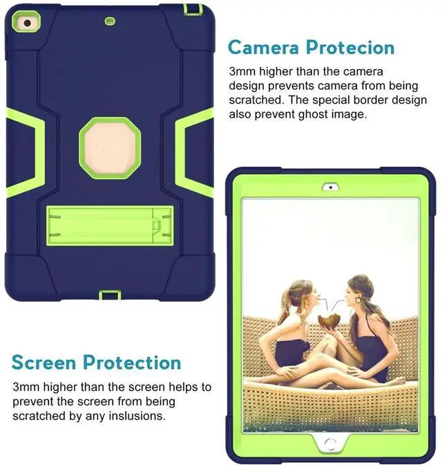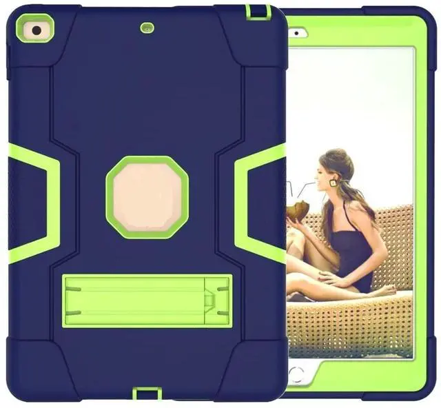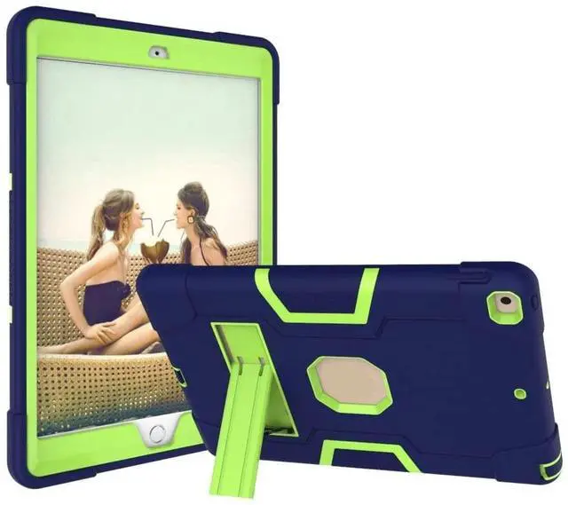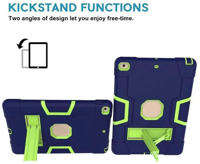 Jaorty for iPad 10.2 inch 2021/2020/2019 Case,9th/8th/7th Generation,3 in 1 Hybrid [Soft&Hard] Heavy Duty Rugged Stand Cover Shockproof Anti-Slip Protective Cases for iPad 7/8/9 Gen,Blue/Yellow Green