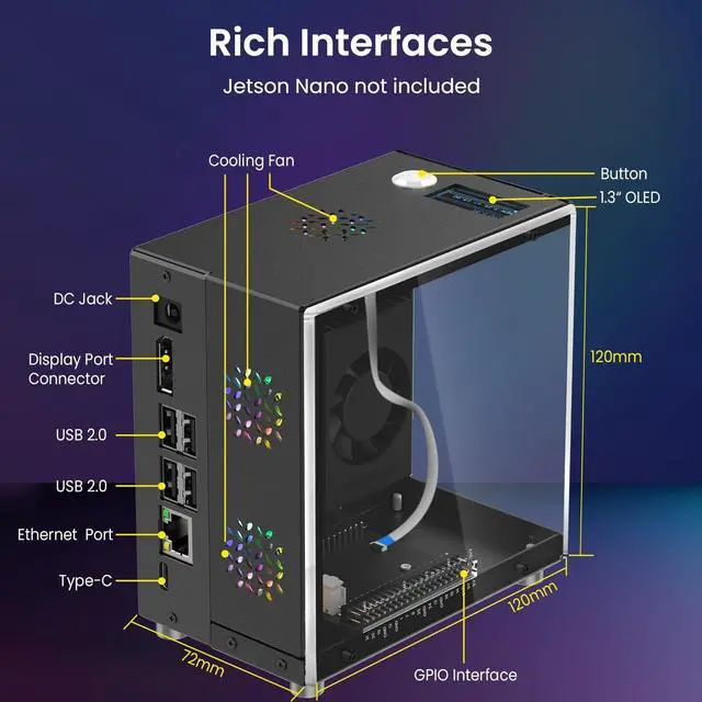 Full I/O Accessibility: The small PC case retains original USB, HD, Ethernet, and other essential interfaces to maximize Jetson Orin Nano's connectivity and expansion potential ^^ Compact, Integrated