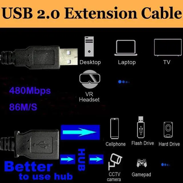 ^^ Broad Compatibility: works to extend USB charging cable, and compatible for USB Flash Drive/Hard Drive/Card Reader, USB Game Controller/Game Console, PlayStation/PS4, Xbox, Mouse, Keyboard, USB Headset, Printer, Scanner, Webcam, USB Hub and more USB-A port devices.