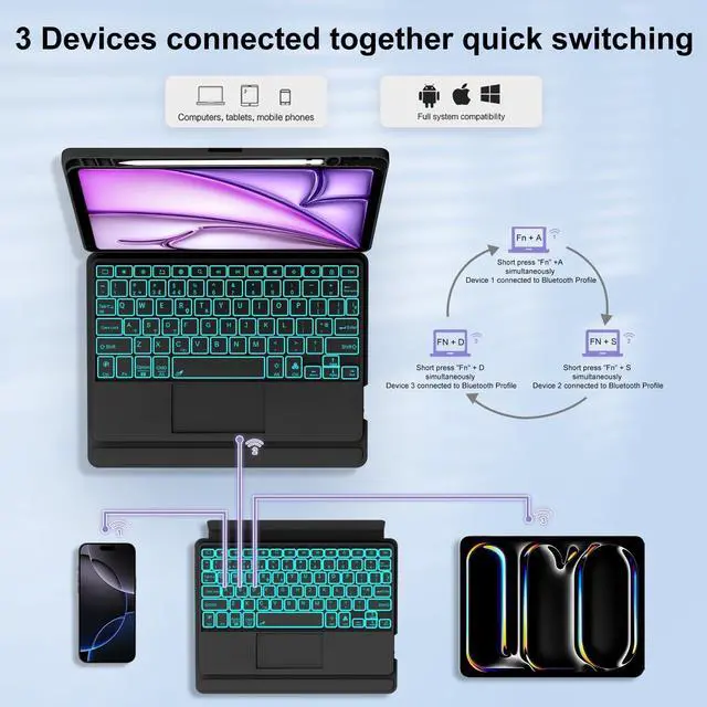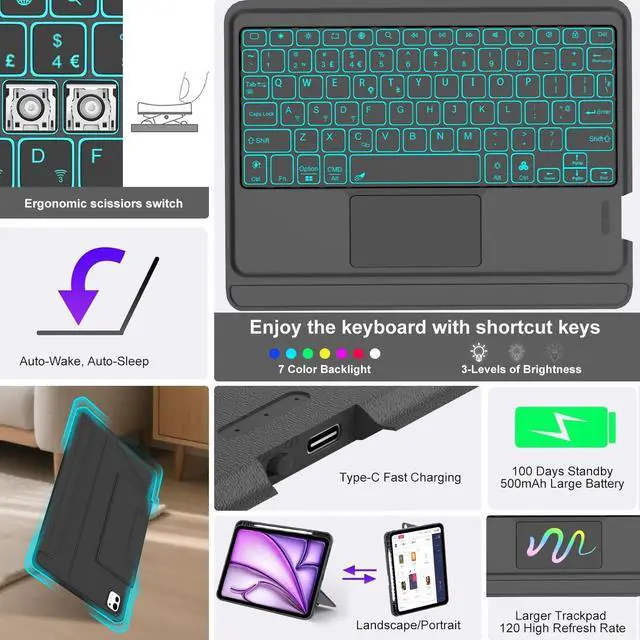 Compatibility:This keyboard case is designed for iPad Air 11 M3 2025 (A3266,A3267) / M2 2024 (A2902, A2903), iPad Air 5th (A2588, A2589, A2591) / 4th (A2316, A2324, A2325, A2072), iPad Pro 11 1-4th. Find Your Model: Setting General About Model Name and number. Please check your iPad model before purchase [Not for Pro 11 M4]