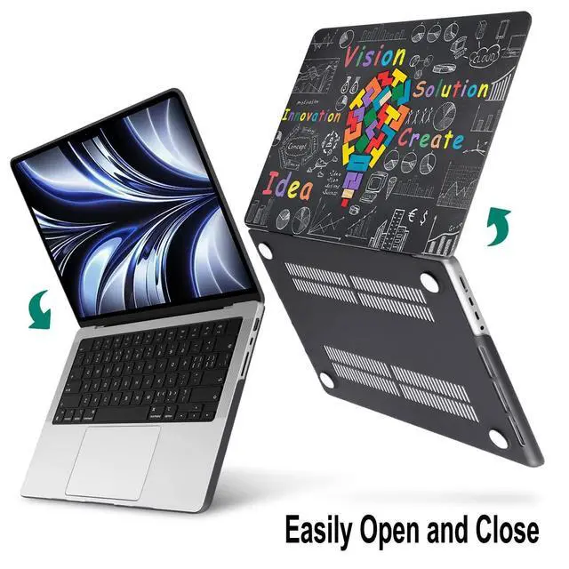 Stylish Design: Trendsetting designs with high quality printing with everlasting colors - perfect for adding some extra flair to your Macbook. The vent slots at the bottom of the case can easily keep your Laptop cool. The four rubber feet can safely keep your device stable. Including 1 matching keyboard covers, 1 screen protector and 1 Mac OS ( Monterey/Big Sur/Catalina/Mojave) Keyboard Shortcuts Clear Vinyl Sticker.