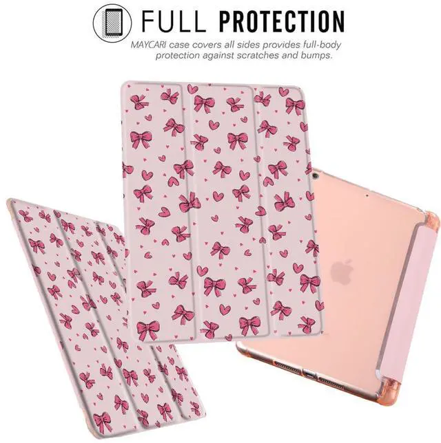 MAYCARI Original Love Hearts Fashion Case for iPad 10.2 inch 2021/2020/2019 with Pencil Holder, Pink Wreath Bows iPad 9th/8th/7th Generation Soft TPU Back Protective Cover, Auto Sleep/Wake Slim Shell