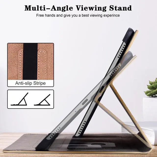 Pratical Design: The 13 inch ipad case m2 allow to adjust multiple horizontal stand angles for watching movies or typing; ipad air 13 cover built-in leather hand strap, stylus holder and three card slots/holder convenient to storage kinds of cards ^^ Full
