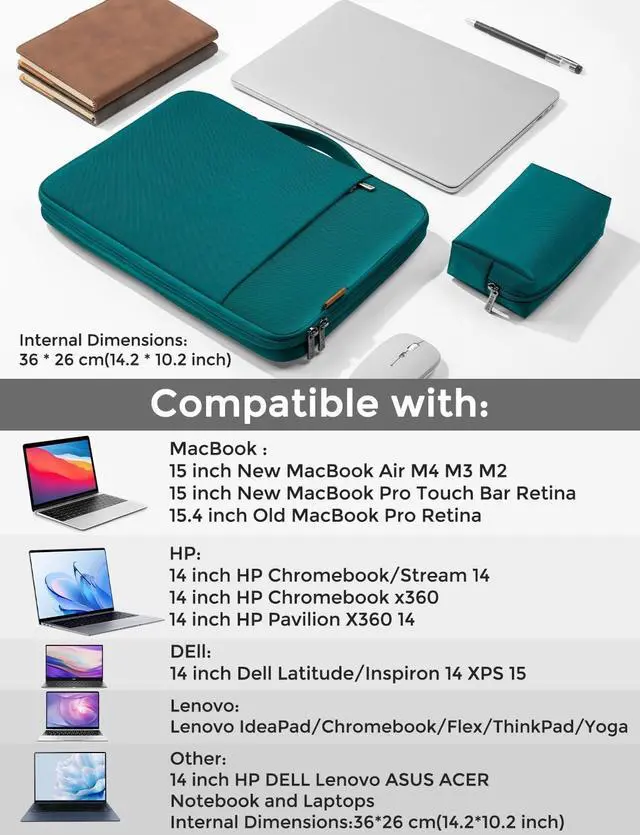 INTERNAL DIMENSIONS: 14.4 * 10.4 * 1.0 inches. Perfectly fits 15-inch New MacBook Air M4/A3241 2025, M3/A3114 2024, M2/A2941 2023, Dell XPS 15 Plus Laptop, 15-inch MacBook Pro (A1990 A1707). Also compatible with 15-inch Microsoft Surface Laptop 7(Copilot+ PC)/6/5/4/3, and most 14 inch laptops notebook from Dell, Acer, Lenovo, HP, Asus.