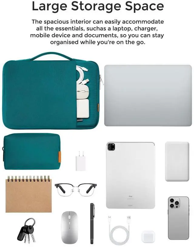 ^^ ENOUGH STORAGE SPACE: The macbook air 15 inch case can protects your laptop and effortlessly meet your everyday storage needs. The main compartment fits laptops up to 14 inches. The front pocket holds tablets, iPad, mice, phones, charging cables, and other small items.