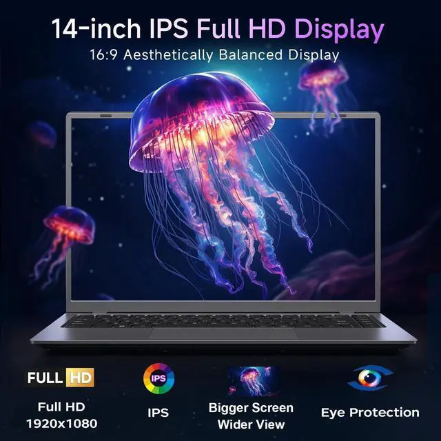 The large RAM allows for smooth and quick data access, enabling seamless switching between different programs. ^^ High Resolution ScreenThe 14 inch screen with a resolution of 1920*1080 IPS FHD offers a vivid and clear visual experience. Whether you're watching movies, working on graphic design projects, or reading e - books, the sharp display and wide viewing angles will surely meet your needs. ^^ User Friendly Design for Easy UseIt is equipped with a 5000mAh large battery, allowing you to easily accomplish whatever you want to do anywhere. The default language is English, and it also supports multiple languages, such as Japanese (in Latin America), Thai, French and German.