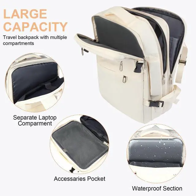 FLIGHT APPROVED: Travel backpacks 180 degree zipper closure helps you pass through the security check quickly. Fits overhead and under the seat. This carry on backpack make your journey more enjoyable and convenient. ^^ MULTIPURPOSEThe big backpack is perfect for indoor, outdoor activities. Served as durable large backpack business work bag, large laptop bag or spacious college backpack, you can use it at anywhere for International travel, daily use, camping, hiking and overnight trip. It is best gift for family and friends.