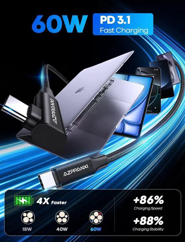 60W Fast Charging with Smart Chip: Delivers fast charging up to 60W with built-in E-Marker chip for safe, intelligent power management.
