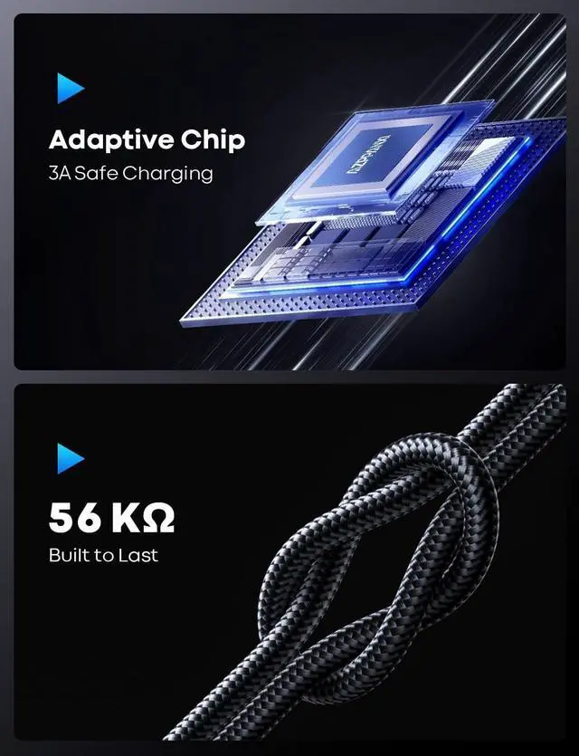 Premium Nylon-Braided Durability: Triple-layer reinforced nylon braiding resists tangles and withstands 35,000+ bends for long-lasting performance.