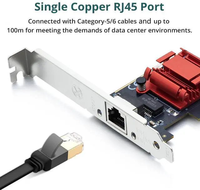 Data Centers: Features a single copper RJ45 port for connecting to Category-5 cabling, supporting up to 100 meters in lengthideal for data center environments. The card operates on the PCI Express* 2.1 standard, with a 2.5 G T/s transfer rate on an X1 Lane, and is compatible with PCI-E X1/X4/X8/X16 slots.