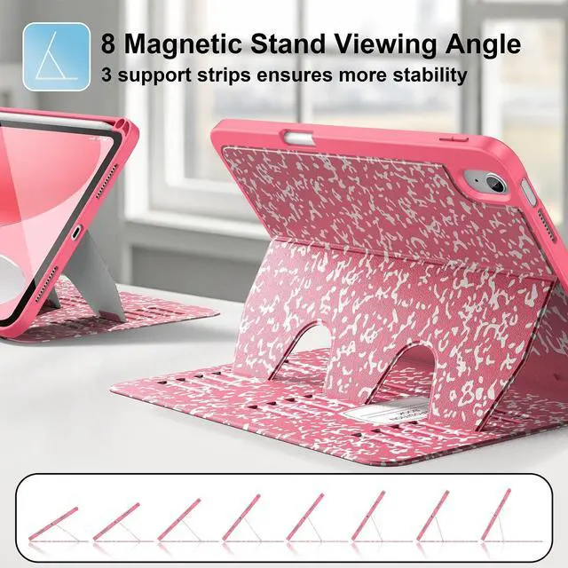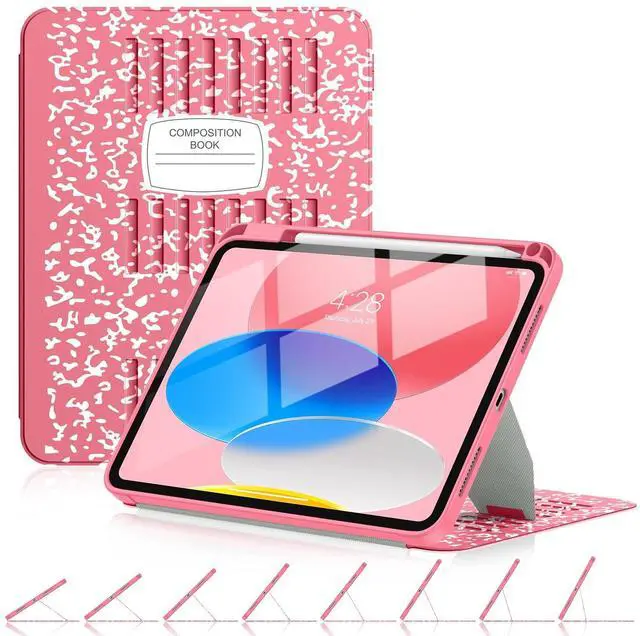 ModelsComposition notebook iPad case designed for new iPad (A16) 11th generation 11 inch/10th generation 10.9 inch released in 2025/2022. Not compatible with other iPad models(ipad 10.2 9th/8th/7th Gen) ^^ MaterialMade of flexible silicone back & TPU cover, iPad (A16) 2025/2022 case provides full protection against shocking & scratching for your new iPad 11th/10th generation 2025/2022 ^^ Multi angles8-angles magnetic stand shell creates different angles for viewing or typing, ensures stability and convenience; magnet secures the iPad 11th/10th generation case closure, easy to snap on and off ^^ FunctionBuilt-in pencil holder makes iPad A16 11th/10th generation 2025/2022 case convenient to carry and better protect your Pencil.