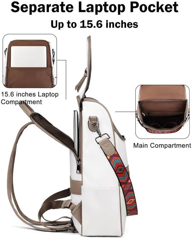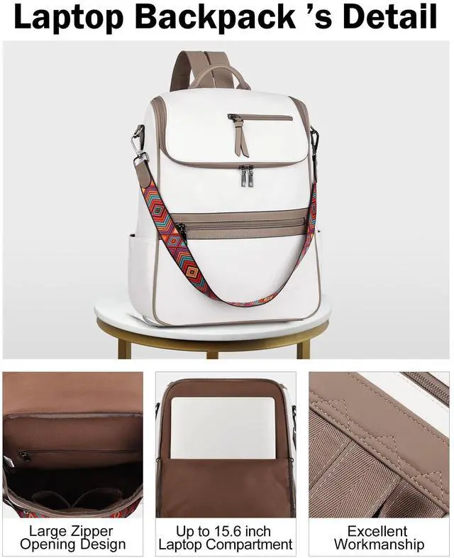 ^^ Shoulder Backpack: This backpack laptop bag for women with a detachable strap can be converted into a shoulder backpack or handbag to meet the needs of different occasions. So the leather laptop backpack with laptop sleeve suitable for a variety of occasions, such as shopping, work, travel, dating, camping, dancing or hiking, for 2-3 days business trip.