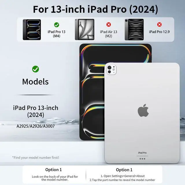 COMPATIBILITY - Case compatible with iPad Pro 13 inch M5 2025Model number: A3360,A3361,A3362), iPad Pro 13 inch M4 chip 2024Model number: A2925,A2926,A3007), NOT compatible with any other iPad models.