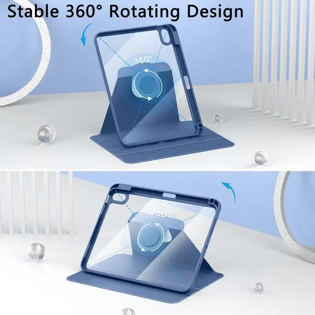 Number: A2696/ A2757/ A2777 / A3162) ^^ [Faux Leather & Transparent Clear Back] - Faux Leather with delicate touch, stain-resistant and washable. Crystal clear hard PC back with TPU frame prevents your new iPad a16 11th/10th Gen from scratching and bumping, offers full body protection ^^ [360 Degree Rotating] - This case for iPad a16 2025 can swivel both vertically and horizontally, non-slip lining material and grooves can set up multiple stand angles stably to reach your most comfortable viewing or typing ^^ [Built-in Pencil Holder] - No Pen included! Support Pencil Charging and provide pen holder nicely to secure your pencil, you can easily carry and use the apple pencil at any time.
