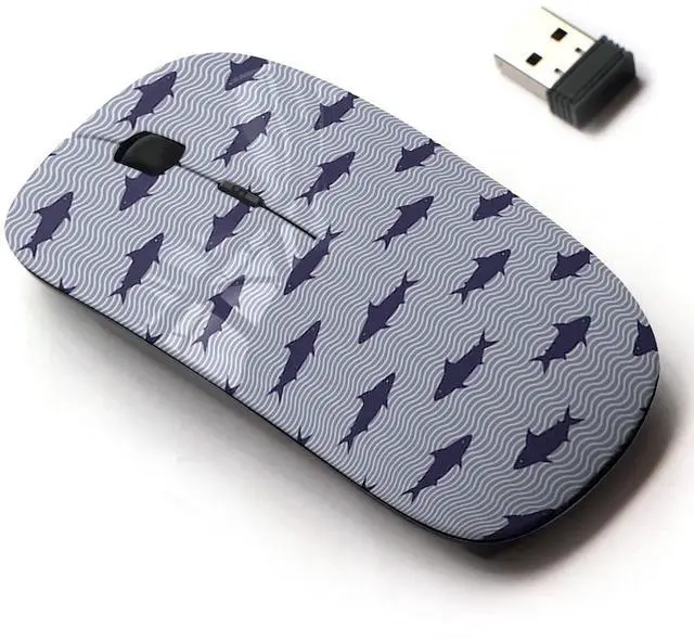 CJCBROES 2.4G Wireless Mouse with Cute Pattern Design for All Laptops and Desktops with Nano Receiver - Sharks Ocean Waves