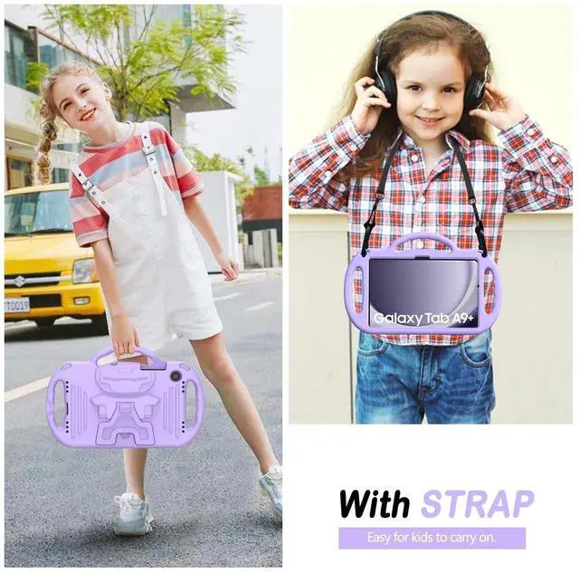 • Shoulder Strap: The strap design of Samsung Galaxy Tab A9+/A9 Plus Case makes it easy for your kids to not only carry it out, but also be able to hang it on the back of the car seat to add a little color to their journey.