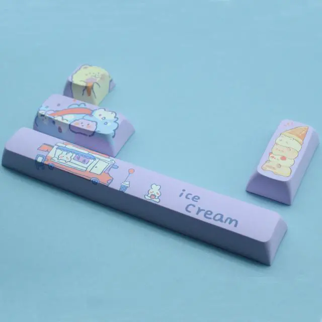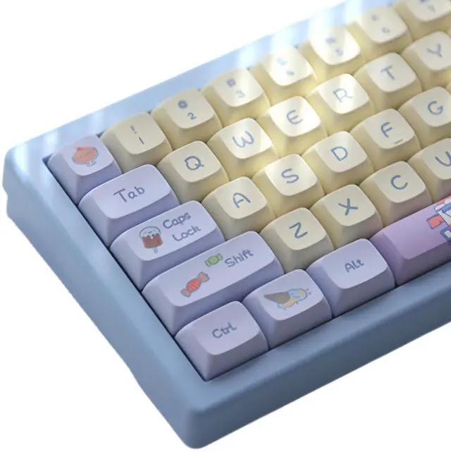 GREAT QUALITY PBT KEYCAPS The dye sublimation PBT keycaps provide durability, using advanced dye sublimation technology making the pattern/letter not fade. Which is not easy to be oiled and grainy, and the dye sublimation process is not easy to wear off. ^^ XDA PROFILE KEYS Every single key of the XDA profile is the same height and shape. Have a cuter, rounder look, which is ideal for making a variety of theme keycaps. ^^ CUSTOM THEME KEYCAPS These custom keycaps are some ice cream theme cute keys and some cute animal novelties which consists of three colors: purple, yellow and blue. ^^ FULL KEYS IN A BOX PACKAGE This item is two layers of plastic board inside a solid box packing. The keycaps are all in order and complimentary a keycap puller. Using these special keycaps replaces general white keys, to DIY your own unique pink style mechanical keyboard! ^^ STRONG COMPATIBILITY Coming with a set of 133-key keycaps which is compatible with most mechanical switches gaming keyboard, such as Cherry, Gateron, Outemu, Kailh. (not support membrane keyboard/low profile switches keyboard)