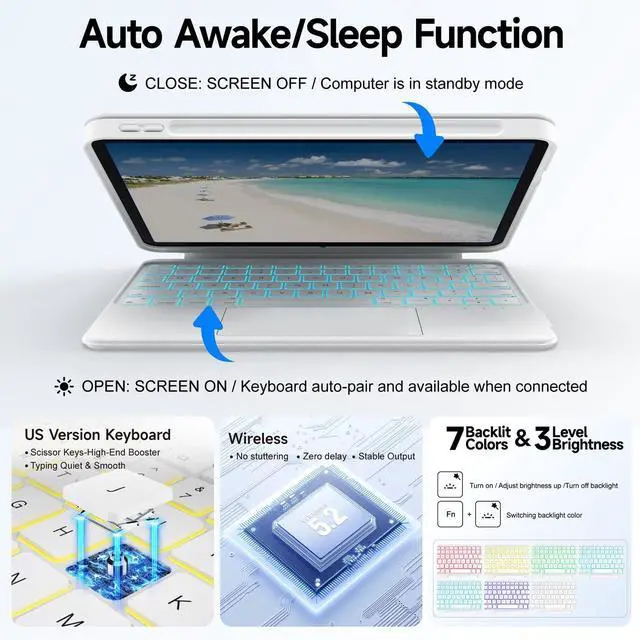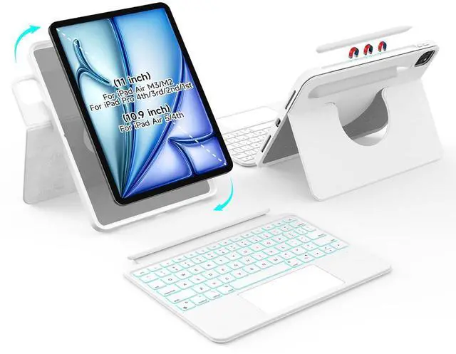 ^^ MAGNETIC DETACH: BYE-BYE, COMPROMISES! Stronger magnetism than your high school crush: Keyboard stays put during typing fury, detaches in 1 sec for drawing/gaming emergencies. Detach keyboard, prop tablet portrait, become Instagram Story king. Attached & Detached in 1 sec. Your creativity waits for no one. ^^ RECHARGEABLE PENCIL HOLDERRechargeable Magnetic Pencil holder holds tighter than your gym lock. Smart screen on/off function to save energy, use for 100 days. ^^ 7-COLOR MOOD LIGHTING & QUIET TYPING Match backlight to your vibe (or your cats eye color). Silent but Deadly Keys 1.3 mm travel distance. ^^ After-sales ServiceWe're here for you, day and night, with lifetime technical support and a 1-year manufacturer's warranty. Your package includes the keyboard with detachable case, a USB-C cable, and a detailed manual because we believe in equipping you with knowledge, not just products. Any questions about operation or product, please do not hesitate to contact us.