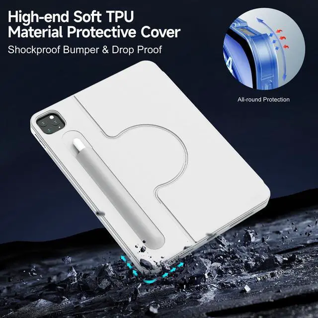 accrosoo 360 SMART ROTATION ^^ BEYOND THE ORDINARYWhy choose between portrait and landscape? Spin our accrosoo keyboard case like a fidget spinner. Netflix in bed, Portrait mode. Zoom call, Landscape mode. No more neck cramps from bad angles during 3-hour Netflix binges! 170adjustable angle wider than a yoga master. ^^ SHOCK-ABSORBING TPU ARMORSurvives backpacks, airport drops, and clumsy partners.