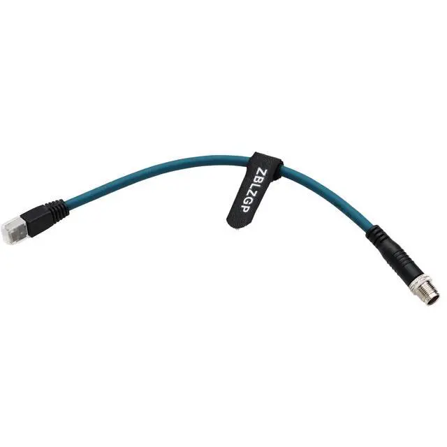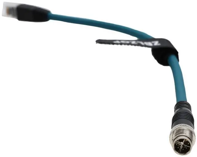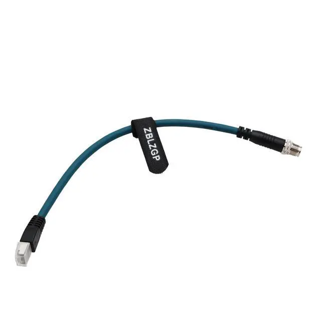 This M12 8 Pole X-Code Male to RJ45 Cat6a Ethernet Shielded Cable is usde for Industrial Machinery, Ethernet, network applications, Matrix Vision, Triton camera models, GigE Vision, basler AVT Sony Cognex CCD cameras.