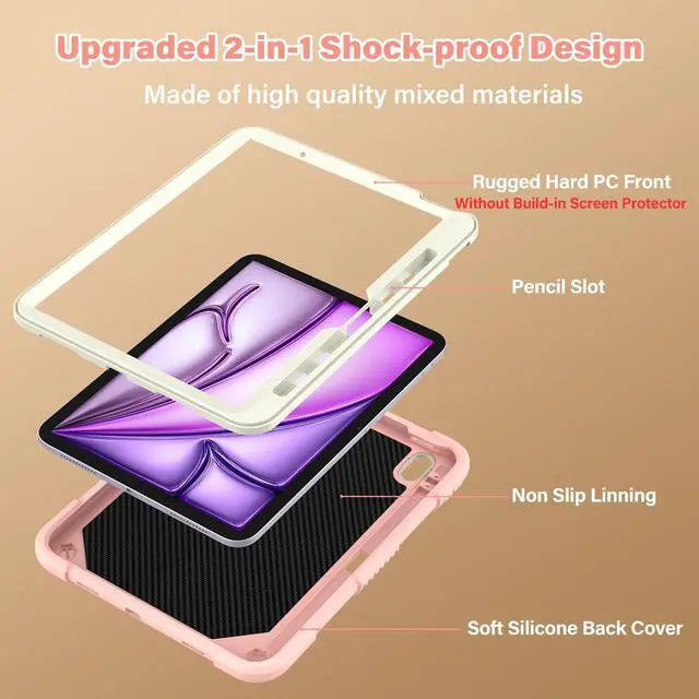 Design: This case compatible with iPad Air 11 Inch M2 2024 and M2 2025 released, made of Premium Soft silicone rubber and hybrid hard PC + front hard PC bumper, easier to install and remove, withstands daily drop, bump and shock with four protection corner cushioning, perfect for Kids. (WITHOUT built-in Screen Protector) ^^