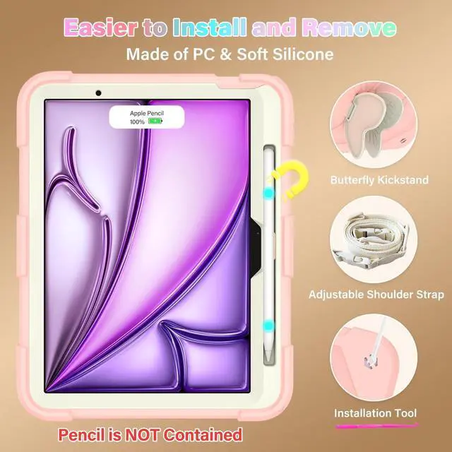 Durable Military-Grade Protection: Our cover for iPad Air 11 Inch 2024/2025 Case passed the military-grade drop test, protects your tablet from all angle. It's a nice gift for kids grils, shockproof anti-Scratch case for iPad ^^ Pencil Slot & Butterfly Kickstand Design: This shockproof cover for iPad Air 11 Inch 6th 2024/2025 Generation case is designed with pencil Slot and sturdy kickstand. The vivid butterfly stand design frees your hands and let you Hassle free to watch movies or video calls. (Pencil is NOT included) ^^
