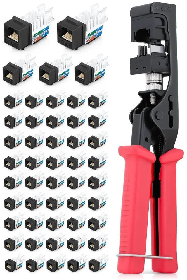 Items: 45Term - Speed Termination Tool + 50 Pack of RJ45 CAT6 UTP Keystone Jacks - Black