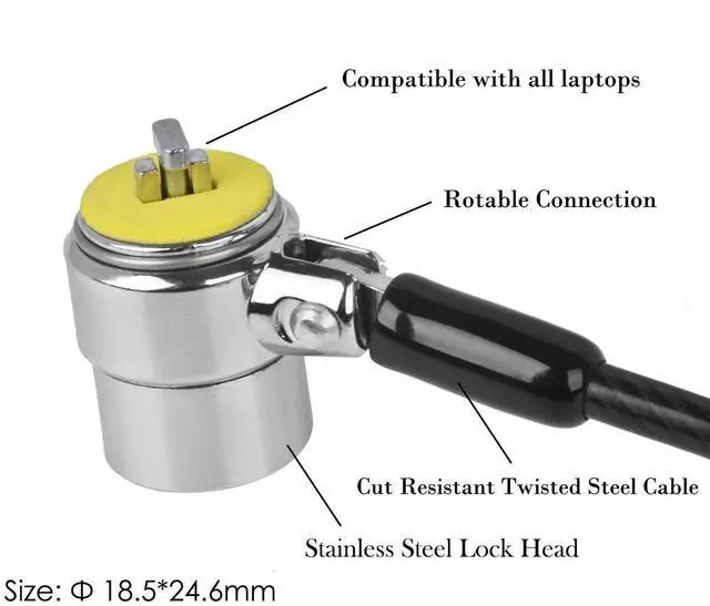 ANTI THEFT: The lock head is made of super-strong stainless steel, can be rotated in 360 degrees. The cable is made of cut-resistant twisted steel with a PVC coat, the extra length of 6.5 ft fully meets your daily demands ^^ MODEL TIPS-- There are some Models need to be used with I3C Adhesive Security Plate, if you mind using I3C anchor plate, please buy it berofe thinking twice, without standard slot could not use it directly, need to be used anchor plate