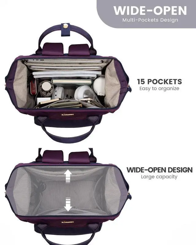 [Wide Open Design Laptop Bag]This laptop bag for women features wide-open main compartment for instant access to your 15.6" laptop. With 2 compartments and 16 strategically placed pockets, it effortlessly organizes textbooks, medical supplies, and all your travel essentials - ensuring users can locate items in seconds. Perfect as work bags for women or nurse bag, teacher bag, travel bag, college backpack, etc. ^^ [TSA Certified Carry On Backpack]Ultra-lightweight Large Capacity airline approved backpack( 11.8"L 7.1"W 16.5"H )Weighing only 1.83 lbs. Designed to reduce shoulder pressure while maintaining a 23L large capacity.