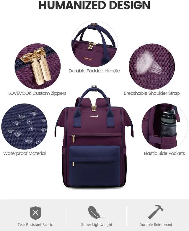 The convenient luggage strap allows you to effortlessly attach the backpack to your suitcase. The anti theft pocket on the back keeps your valuables secure, and the hidden handle provides an alternative carrying option. ^^ [Versatile Use & Ideal Gift Option]Suitable for both men and women, this laptop backpack is an extremely practical multi purpose bag. Well-made womens laptop backpack is perfect for work, school, travel, daily and family vacations. As a practical and stylish gift, it's a great choice for family, colleagues, or loved ones. Lovevook backpack can always bring you the most comfortable experience.