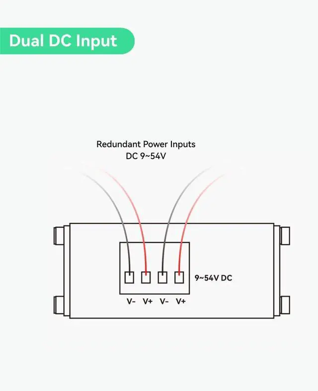 ^^ INDUSTRIAL DESIGN: Compact IP40 rugged metal enclosure; Wide working temperature (-40 to 176 ); Support DIN-Rail & Wall Mount ^^ NON-STOP POE SUPPLY WITH DUAL POWER INPUT: Support 2 channel DC12V-48V redundant power inputs and auto failover, ensure high reliability networking system. Compatible with Mode B POE outputs only.