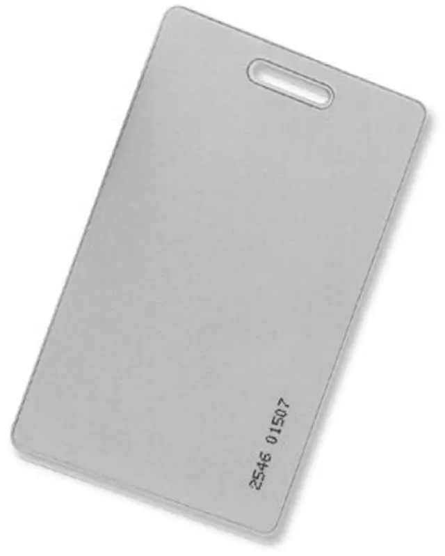 The most popular proximity card in existence, it is thin enough to be "wallet-friendly" It comes standard with a vertical slot punch and can accept photos and graphics via industry standard adhesive packs (dye sublimation or laminated). Size is 2.13" x 3.38" x 0.065" (54 mm x 86 mm x 1.6 mm). Sequentially numbered (C5 formatting excepted). Pack of 100 cards