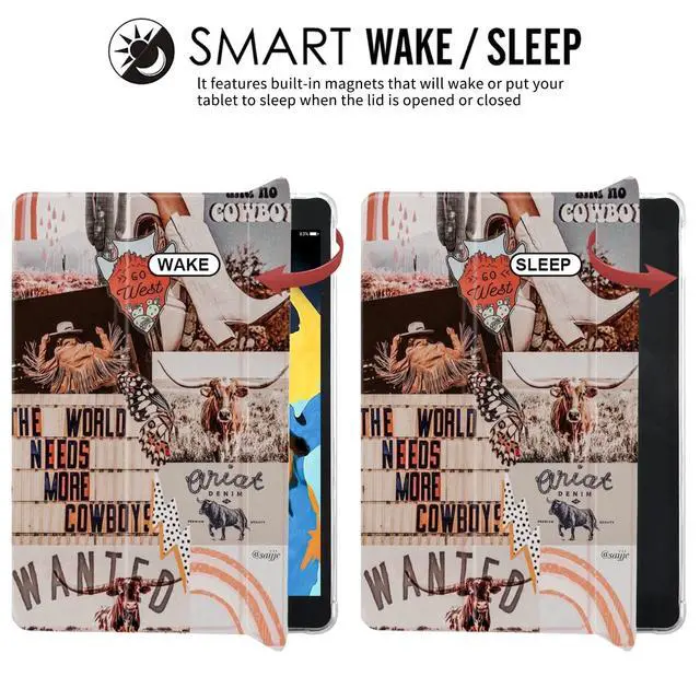 Pencil Holder]: Floral print ipad case comes with a slot for holding your pencil, It is convenient for you to save your apple pencil. (the product does not include pencil) ^^ [Auto