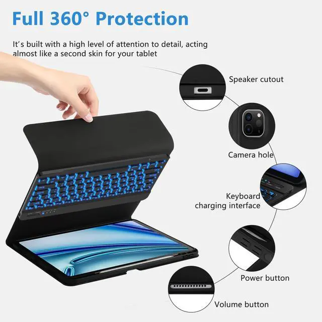 Package & After-sales Service: You will get 1* case for iPad pro 13 inch (M5/M4, 2025/2024), 1 * backlight bluetooth keyboard, 1* charging cable, 1 * user guide. If you have any questions for iPad pro 13 keyboard case please feel free to click on the history order to contact us for help.