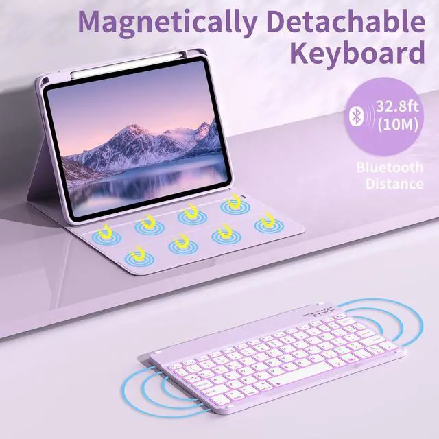 Number: A2696 A2757 A2777). It is Not compatible with any other models. Please check the model number starting with "A" on the back of your iPad before purchasing. ^^ Bluetooth Wireless Keyboard Case- Magnetic compact wireless Bluetooth Slim 6.2 mm keyboard with 10m range, easy to install and remove, can be securely attached to the iPad 11th/10th gen keyboard case, instantly become a portable laptop. Including volume and media controls, brightness adjustment, and more. Keyboard design using scissor-cross low profile structure, enhance the tactility of typing, let you faster and easier to learn and work. Easily prop up your iPad with standing position for enjoy the most comfortable flexible angles. ^^ Quickly Become a Laptop- This ipad keyboard 11th/10th generation will easily turn your iPad into a powerful laptop. Easy to use and portable, suitable for meetings, travel or home, it is a good companion for work and study. This is a great gift option for the loved ones on your holiday gift wish list. Can be given to your familes or relatives and friends as a birthday, Christmas, Thanksgiving, Mother's Day, Father's Day gift.