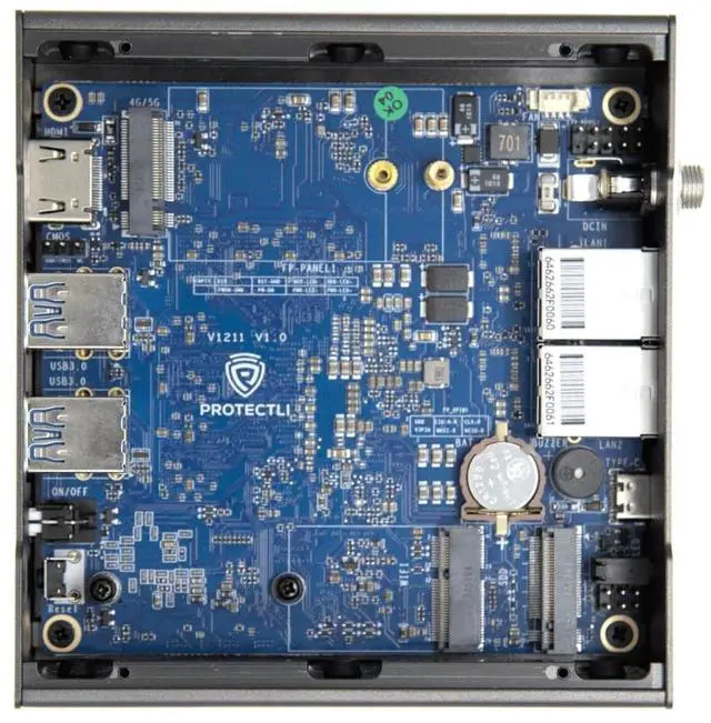 The Vault is a small form factor PC built for use as a firewall / router and other, typically Open Source, applications. The V1211 Vault features an Intel N5105, fixed DDR4 memory configuration (8GB on the V1211), 32GB eMMC, M. 2 NVMe storage along with M. 2 slots for optional WiFi, LTE and other modules. The V1211 has 2 Intel I226-V 2.5G RJ-45 Ethernet ports. The Vault uses standard Intel components, including Intel network ports, which results in compatibility with a large variety of operating systems (OS) and applications.