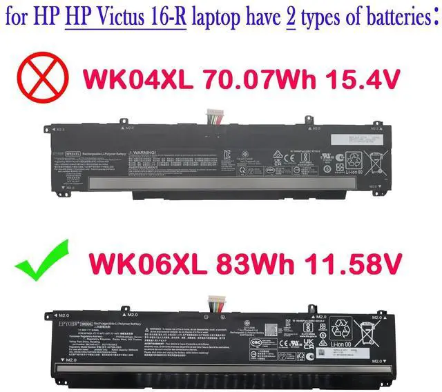 Condition: Brand New. ^^ Replace Part Number WK06XL HSTNN-WB0C HSTNN-OB2I M41640-CD1 M41711-005 M41640-AC1 ^^ Compatible with Laptop Models for HP Omen 16-WD 16-WD0040NF Series; for HP Omen 16-XF 16-XF0061NF Series; for HP Omen 16-XD 16-XD0012NF Series; for HP Omen 16-WF Series; for HP Omen 16-B Series; for HP Omen 16-C Series; for HP Omen 16T-C Series; for HP Omen 8 Plus 17-CK1000 Series; for HP Omen 9 plus 17-CK2000 Series; for HP Omen 16-K Series; for HP Omen 16-N 16-N0000 Series; for HP Omen 17-CK 17-CK0000 Series; for HP Omen 17-CP Series; for HP Omen 17T-CK CTO Series; for HP Victus 16-R Series ^^ Purchase SkillsPlease open the back cover of the laptop before ordering and make sure that the original battery model is consistent with the listing. After getting the battery, please install the battery correctly, make sure that the battery connector is firmly connected to the laptop motherboard, and use the original charger to charge the laptop. Discharge the new battery to 5% (not 0%), then charge and cycle 3-5 times to wake up the new battery.
