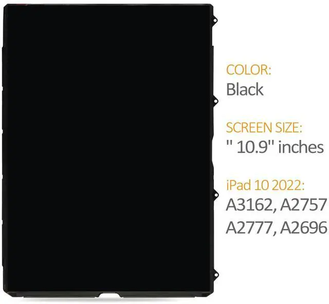 A-MIND LCD Display Replacement for iPad 10th Gen 2022 10.9" IPS Panel (A2757, A2777, A2696)Compatible with iPad 10th Gen 2022 (A2757, A2777, A2696) High-Quality IPS LCD PanelThis replacement screen for iPad 10th Generation 2022 features an original 10.9 -inch IPS LCD panel, delivering sharp resolution, accurate color reproduction, and consistent brightness, maintaining the quality of the original display. LCD Only No Touch DigitizerThis package only includes the LCD panel and does not come with a touch digitizer. If your iPad has unresponsive touch issues, you may need to replace the digitizer separately.