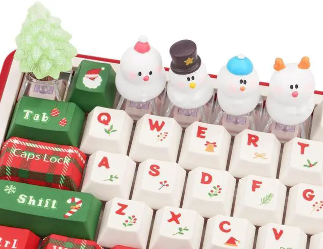 Festive Christmas Keycap Set Handcrafted Holiday MagicBring the joy of the season to your desk with this delightful set of 5 Christmas-themed keycaps. Featuring charming snowman designs in semi-transparent resin, these keycaps glow beautifully with RGB backlighting, wrapping your keyboard in a cozy, festive atmosphere thats perfect for the holidays.