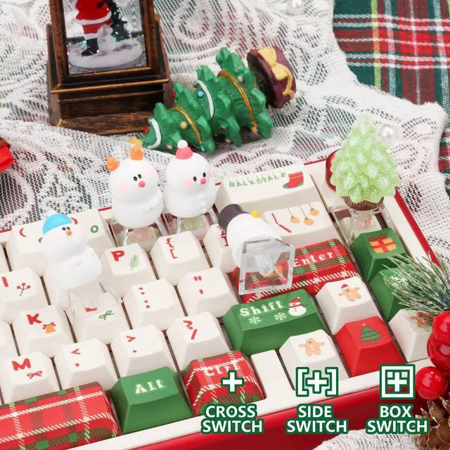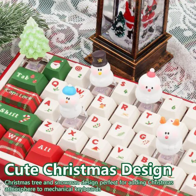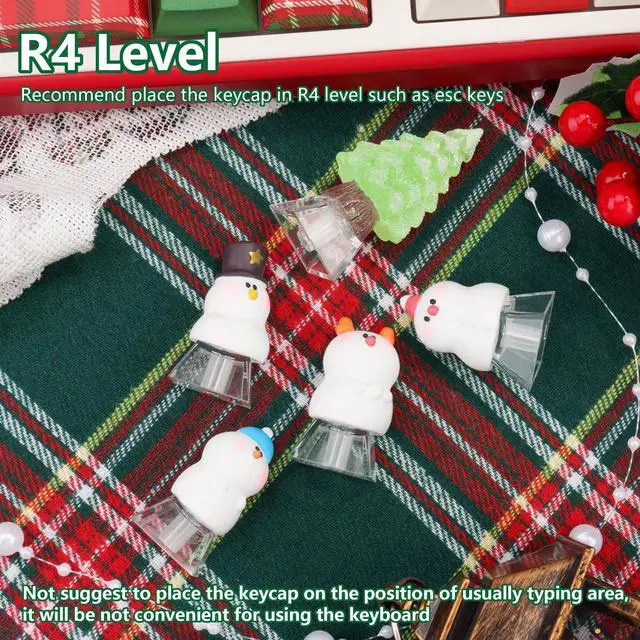 Note: Perfectionists, Please Consider Carefully Before PurchasingEach keycap is meticulously handcrafted using artisanal methods, which may result in minor imperfections such as tiny bubbles, slight color variations, or subtle surface irregularities. These are natural characteristics of handmade resin piecesnot defects. If you expect machine-perfect uniformity, please consider this carefully before purchasing. Set Contents 5 Keycaps Only, Keyboard Not IncludedThis listing includes 5 cute Christmas-themed keycaps. The keyboard shown in product images is for display purposes only and is not included in your purchase. ESC Keycap R4 Height for Decorative PlacementThe ESC keycap features an R4 profile (taller than standard keys). For optimal comfort and aesthetics, we recommend installing it on the ESC key or other infrequently used keys (e. g., Insert, Scroll Lock, F13+). This ensures it adds festive charm without disrupting your typing or gaming experience. Universal MX Compatibility Fits Most Mechanical SwitchesBuilt with a standard +-shaped stem, these keycaps are fully compatible with Cherry MX, Kailh, Gateron, Outemu, and all other MX-style mechanical switches. Easy to installjust press on and enjoy instant holiday cheer! Backlight-Friendly & Festive GlowCrafted from semi-transparent resin, these keycaps let your keyboards RGB lighting shine through vividly.