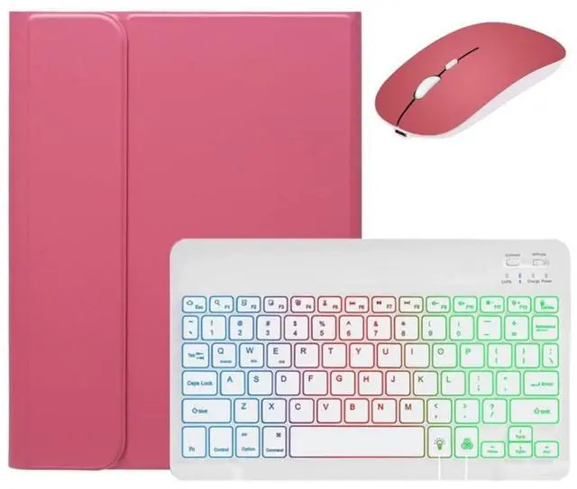 Keyboard with 7 Colors BacklightThis keyboard case is equipped with an RGB 7 color backlit keyboard design, which allows 7 bright colors to shine in the dark, making typing more fun and easy.