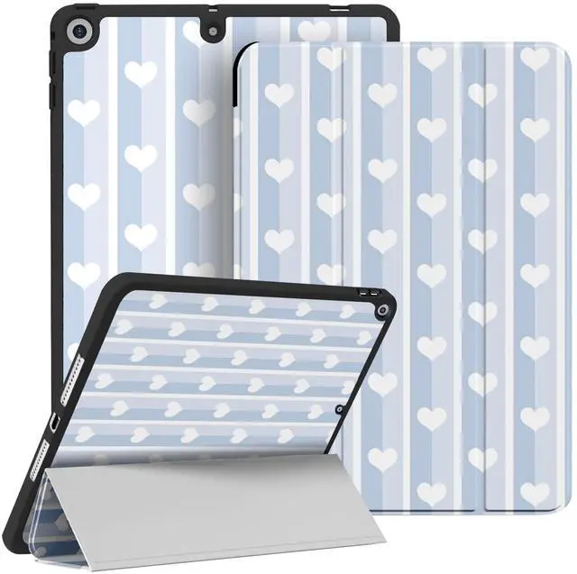 HSMYDBCYC Case for iPad 9th/ 8th/ 7th Generation 10.2 inch 2021/2020/ 2019Fashionable Pattern Case with Pencil Holder Trifold Smart Stand Cover (Heart Blue)