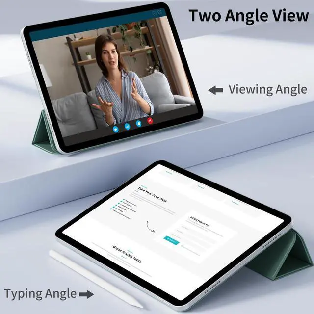 Two-Way Stand: magnetic trifold cover easily folds into a stable stand for viewing or writing to ensure a comfortable angle for catching up on your