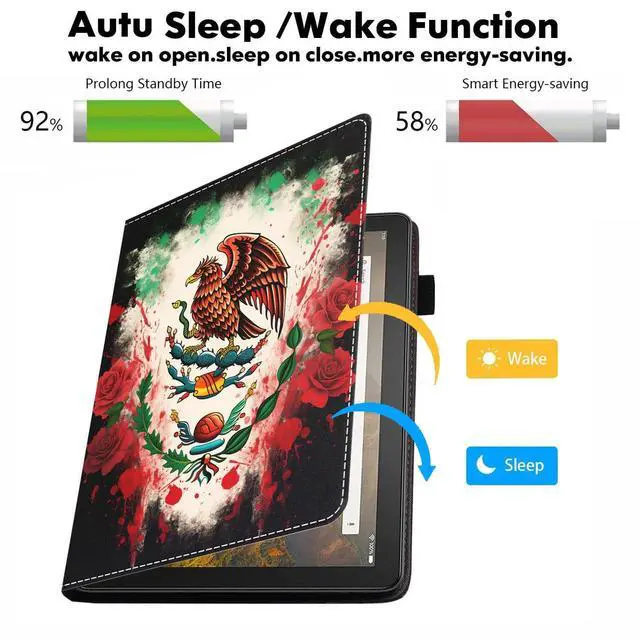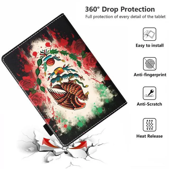 Product Features: Made of High end PU leather, features shockproof, protective smooth outer casing and sturdy exterior with soft microfiber interior keeps your tablet screen safe. This tablet case with HD print in colorful pattern of various style, Durable to use and no fade, Perfectly decor your tablet, Beauty and function come together. Viewing angle frees your hands from other activities and avoids any joint pain, and enables you to type or watch videos comfortably. Provides auto sleep/wake function with built-in magnetic strips. Smart automatically wakes or puts your device to sleep when the lid is opened and closed. Designed with 3 delicate card slots inside for you to carry your necessary cards. There is a flexible pencil holder at the edge of the shell for keeping your stylus in place (Stylus is not included). Precise cutouts design makes all ports, buttons, cameras and microphones be accessible easily without removing the case.