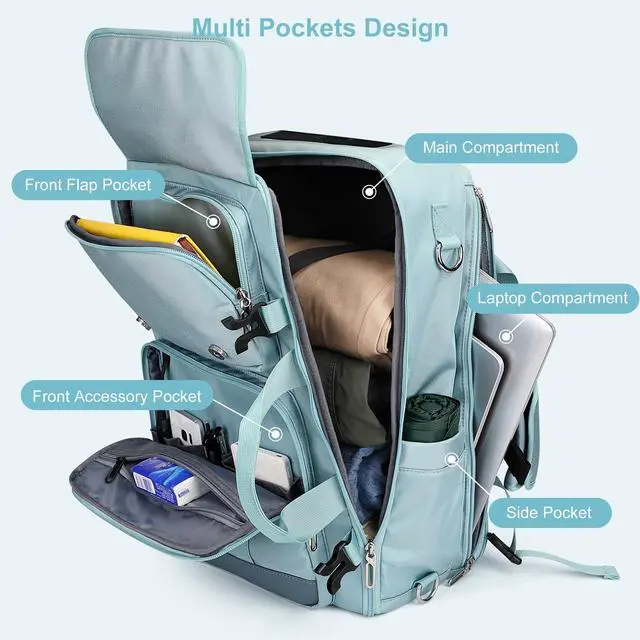 PIJUSHI Travel Backpack for Women Carry on Luggage Backpack Convertible Large Laptop Duffel Bag for Airplanes(PE049 Teal Blue)
