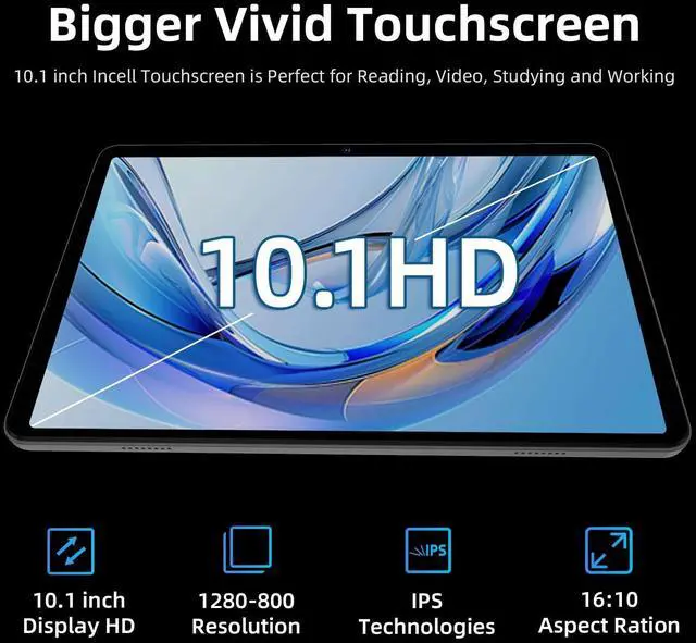 ^^ HD Large Screen - The tablet is equipped with a 1280x800 low blue light LCD touch screen, which provides clear visuals and vivid colors, ideal for streaming videos, browsing, and comfortable reading. ^^ Long-Lasting Battery - The 6000mAh battery lets you enjoy up to 8 hours of mixed reading, video watching, and web browsing. With the Type-C port and 18W PD fast charging, the tablet can be fully charged in just about 2 hours, saving you valuable waiting time.