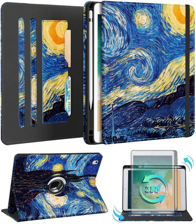 Multi-Functional Design: This for iPad cover 5th generation case/for Apple for iPad Air 1st generation case/for iPad Pro cover 9.7 inch case features an elasticized cord strap, which ensures that your tablet closes securely, provides slip or drop protection. It also has two card slots designed to hold your bank cards business cards and other cards