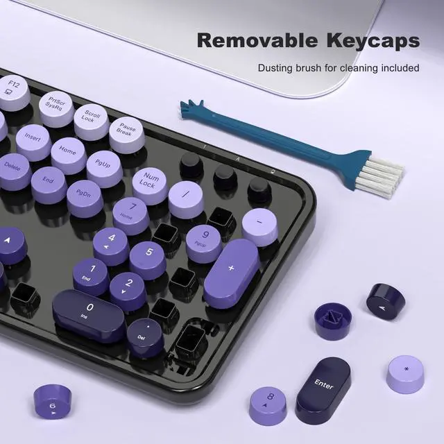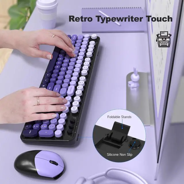 Mouse Combo: Experience the nostalgic charm of typewriters with the MOFII computer keyboard's retro round keycaps. While staying comfortable during long sessions thanks to its ergonomic foldable stand and anti-slip pads. ^^ 2.4GH z