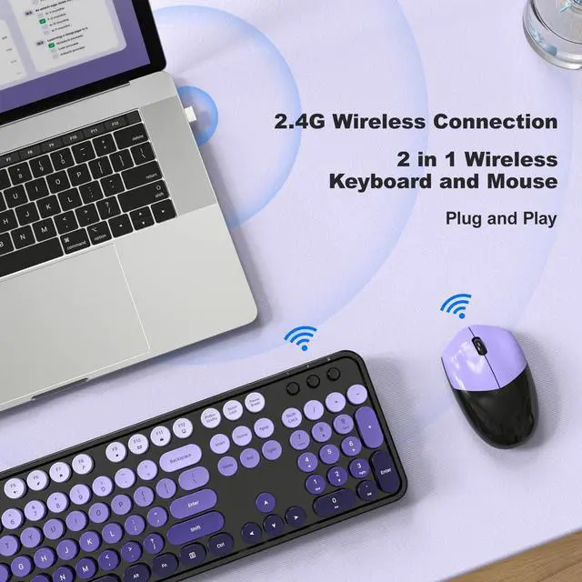 ^^ Auto Sleep Mode: Our cute colorful keyboard and mouse wireless combos both require only 1 AA battery. Wireless keyboard and mouse automatically enter sleep mode after 5 minutes of inactivity, efficiently saving battery life and reducing the need for frequent replacements.